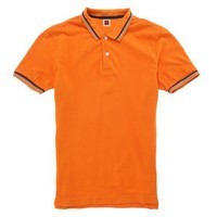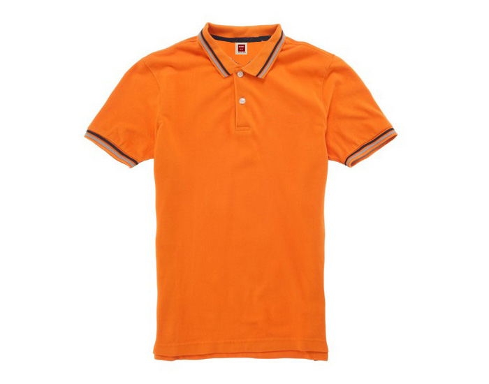 เสื้อโปโลสีส้ม เฟรช ออเร้นจ์ Fresh Orange คาดขลิบปกและแขนสีน้ำเงินและฟ้า 2 เส้นสไตล์แฟชั่นอังกฤษ ใส่ดู ทันสมัย สนุกสนาน สีและแบบอินเทรนด์